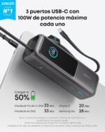 Powerbank Anker 25000 Mah A 165w Dos Cables Tipo C Integrado Negro