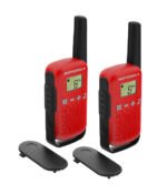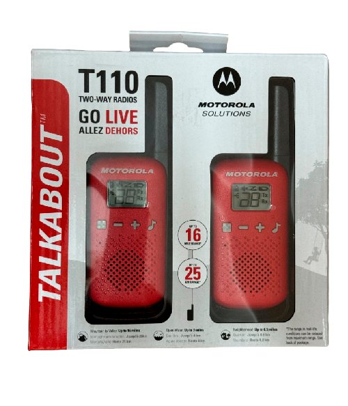 - Alimentación: El radio funciona con pilas alcalinas AAA (generalmente se necesitan 3 por radio, no incluidas en todos los paquetes). La duración de la batería es de hasta 19 horas con pilas alcalinas.
