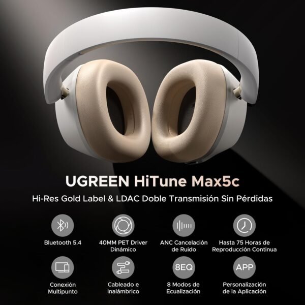 【Disfruta del Mejor Sonido de Alta Resolución】Audífonos inalámbricos diadema aplicados con la tecnología de decodificación de audio LDAC, los auriculares UGREEN Max 5C brindan a los usuarios los efectos de sonido sin pérdidas más realistas y claros. Hemos aprobado la certificación Dual Hi-Res: Wired Hi-Res y Wireless Hi-Res (solo un pequeño número de vendedores pueden obtenerla). UGREEN se compromete a crear una experiencia de sonido de primera línea para todos los amantes de la música y clientes.