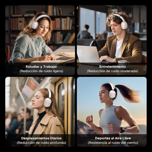 【 Tecnología ANC Adiós al Ruido】Ya sea que esté viajando, trabajando, viajando o estudiando, los audífonos inalámbricos Over Ear pueden brindarle un espacio de audio personal envolvente. Nuestros auriculares bluetooth están equipados con tecnología ANC (cancelación de ruido adaptativa) de nivel A que puede ajustar automáticamente el efecto de reducción de ruido de acuerdo con el ruido del entorno circundante, brindando una experiencia de reducción de ruido más inteligente y personalizada.