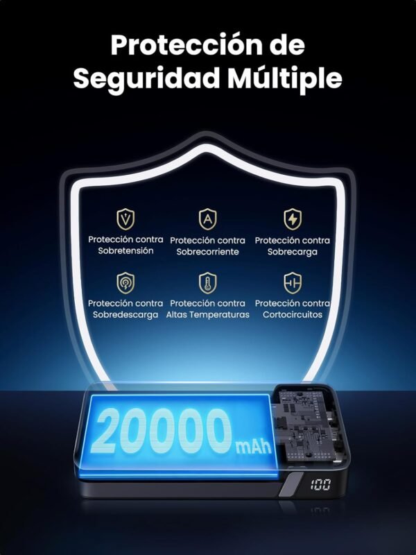 20000mAh de Gran Capacidad: Cargador portatil no sólo tiene una salida de alta potencia de 100W, sino que también tiene una batería incorporada de alta capacidad de 20000mAh, que puede llenar el iPhone 15 Pro unas 4,5 veces, el Galaxy S23 Ultra unas 3 veces, y el MacBook Air M2 15″ unas 1,1 veces. Múltiples protecciones incluyendo sobrecarga, sobredescarga, sobrecorriente, sobretensión y protección contra cortocircuitos con un alto rendimiento y características de seguridad