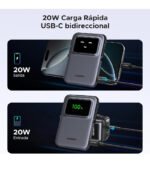 Equipado con un conector USB-C, este powerbank es compatible con una amplia gama de dispositivos móviles, garantizando que puedas cargar tu smartphone o tablet de manera rápida y sencilla. La velocidad de carga de 20W permite que tus dispositivos se recarguen en un tiempo récord, ideal para aquellos que están siempre en movimiento.